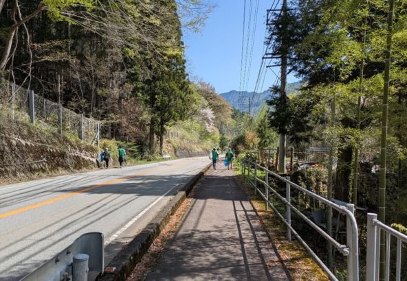 夏は涼しく、心地よい風の吹く森の小道を通って、吉田川まで散策できます。