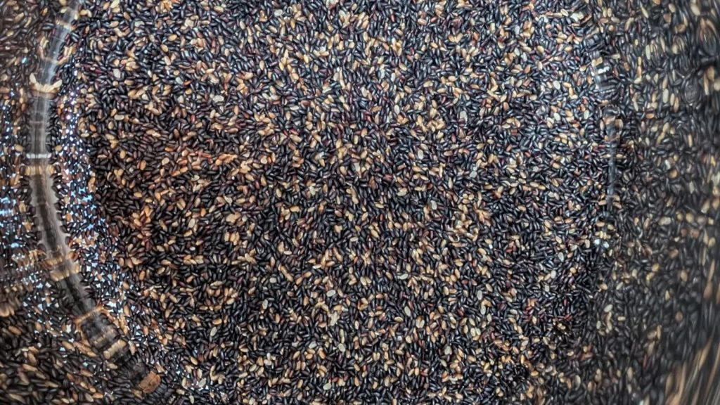 どぶろく醸造 2025.11.10 どぶろく造り G2酵母を使ってどぶろくを仕込み始めました。どぶろくに色をつけることを目的として、今回は黒米を混ぜたものも作ってみました。うまく発酵が進んでほしいです。 どぶろく醸造