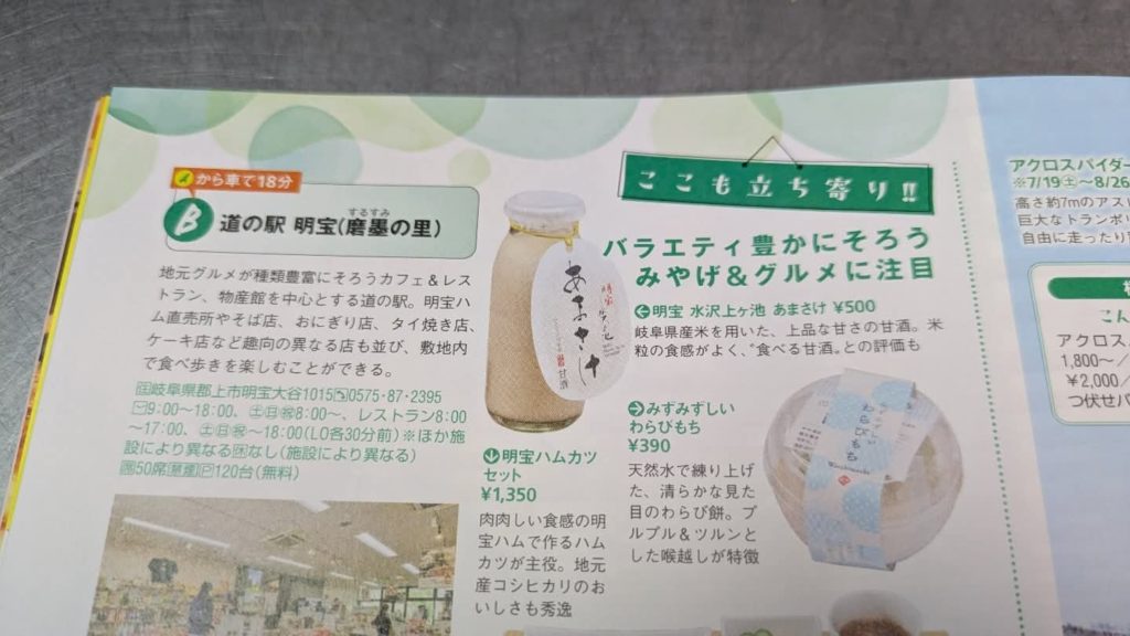 「東海ウォーカー 2025夏号」岐阜・郡上の特集ページにある道の駅明宝のコーナーで甘酒を紹介して頂きました。